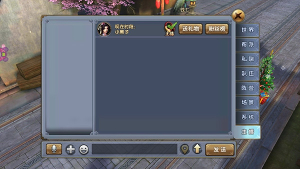 点开聊天窗口后,选择最下面的【主播】频道,点击主播按钮开始收听主播