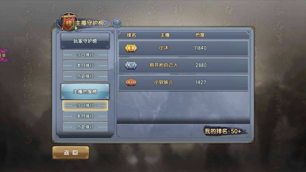 在当前主播播音时,赠送糖人会给主播增加热度,同时自己获得守护值,为了让你喜欢的主播上榜,做出选择吧